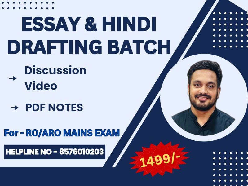 नमस्कार, InFocus Civil Academy के इस ' निबंध एवं हिंदी आलेखन कोर्स 7.0 ' में आपका स्वागत है| यह कोर्स RO/ARO की मुख्य परीक्षा में पूछे जाने वाले परंपरागत प्रकार के निबंध एवं हिंदी ड्राफ्टिंग प्रश्नपत्र की समग्र तैयारी हेतु पूर्णतः समर्पित है | हमेशा से ही Best-selling रहे हमारे निबंध के कोर्स का यह छठवां संस्करण है जिसकी प्रमुख विशेषताएं निम्नलिखित हैं - 1. इस कोर्स में UPPSC की विभिन्न परीक्षाओं में पूछे जाने वाले निबंध के सभी नौ खंडों के सर्वाधिक महत्वपूर्ण विषय शामिल होंगे। 2. इन विषयों पर वीडियो लेक्चर के साथ संक्षिप्त एवं सारगर्भित Updated PDF नोट्स भी उपलब्ध कराए जाएंगे । साथ ही, अति महत्वपूर्ण कविताएं, उद्धरण इत्यादि भी दिए जायेंगे। 3. निबंध के सभी पक्षों यथा भूमिका, मुख्य विषय वस्तु एवम निष्कर्ष आदि पर विस्तार से चर्चा की जाएगी तथा कई Model Essays भी उपलब्ध कराए जायेंगे। 4. निबंध के प्रश्न पत्र में अधिकाधिक अंक लाने की बेहद महत्वपूर्ण रणनीति भी साझा की जाएगी। 5. कोर्स में विगत वर्षों में पूछे गए निबंधों पर भी चर्चा की जाएगी। 6. समयाभाव के कारण इस कोर्स में हमारे अन्य कोर्स की भाँति विस्तृत लेखन अभ्यास नहीं कराया जा सकेगा। विषय संबंधी किसी शंका के समाधान हेतु आप App/Whatsapp पर मेसेज अथवा कॉल कर सकते हैं। 7. हिंदी आलेखन की परीक्षा के संपूर्ण पाठ्यक्रम पर वीडियो तथा नोट्स उपलब्ध कराए जाएंगे जिसमें गद्यांश, सारणीयन, पत्राचार, कंप्यूटर जैसे विषयों से संबंधित सभी महत्त्वपूर्ण अवधारणाओं को स्पष्ट किया जायेगा| 8. निष्कर्षतः यह कोर्स निबंध एवं हिंदी ड्राफ्टिंग प्रश्न पत्र के लिए Ready Content उपलब्ध कराने के साथ साथ इस विषय की मांग को समझने और रणनीति बनाने की दिशा में अपनी तरह का अनूठा प्रयास है जो आपको अधिक अंक अर्जित करने की दिशा में निश्चित तौर पर मददगार साबित होगा। शुभकामनाएं, इनफ़ोकस सिविल अकादमी